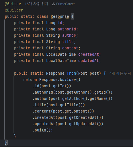 3. 그 후, 각 Post에서 post.getAuthor().getName() 같은 걸 화면에 보여주려고 접근